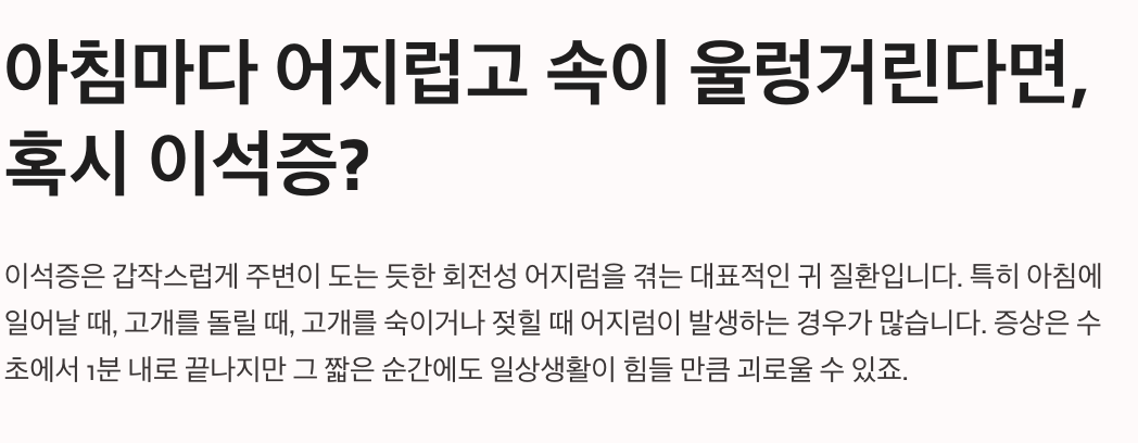 단순한 어지럼으로 넘기기엔 이석증은 일상에 큰 불편을 줍니다.
