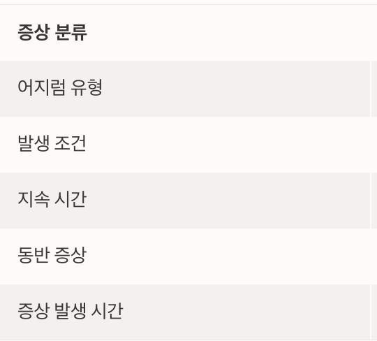 | 어지럼 유형 | 회전성 어지럼, 주변이 도는 느낌 |