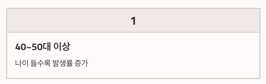 | 40~50대 이상 | 나이 들수록 발생률 증가 |