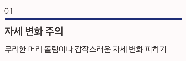 - 무리한 머리 돌림이나 갑작스러운 자세 변화 피하기