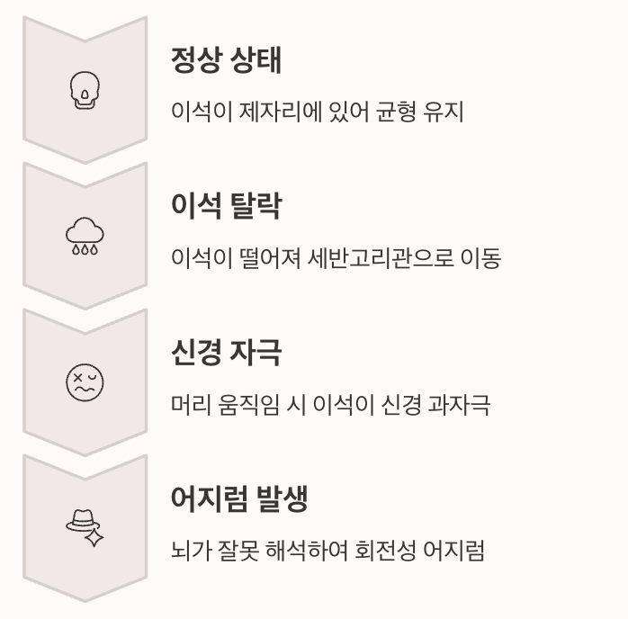 | 발생 조건 | 고개를 돌릴 때, 누웠다 일어날 때, 숙일 때 등 |