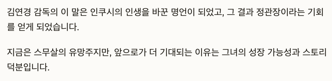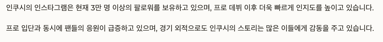 경기 외적으로도 인쿠시의 스토리는 많은 이들에게 감동을 주고 있습니다.