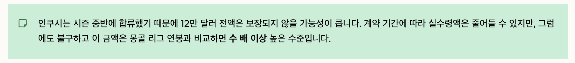 인쿠시 연봉은 얼마일까? 아시아쿼터 기준 분석