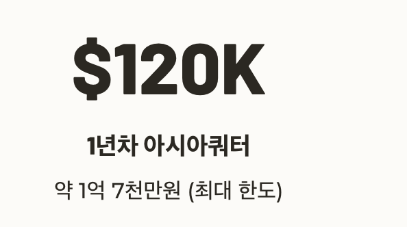 | 1년차 아시아쿼터 | 12만 달러 (약 1억 7천만원) | 최대 한도 |