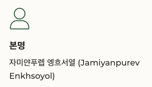| 본명 | 자미얀푸렙 엥흐서열 (Jamiyanpurev Enkhsoyol) |