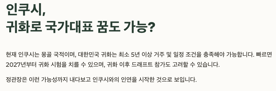 귀화 이후 드래프트 참가도 고려할 수 있습니다.