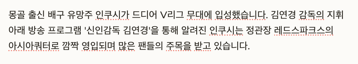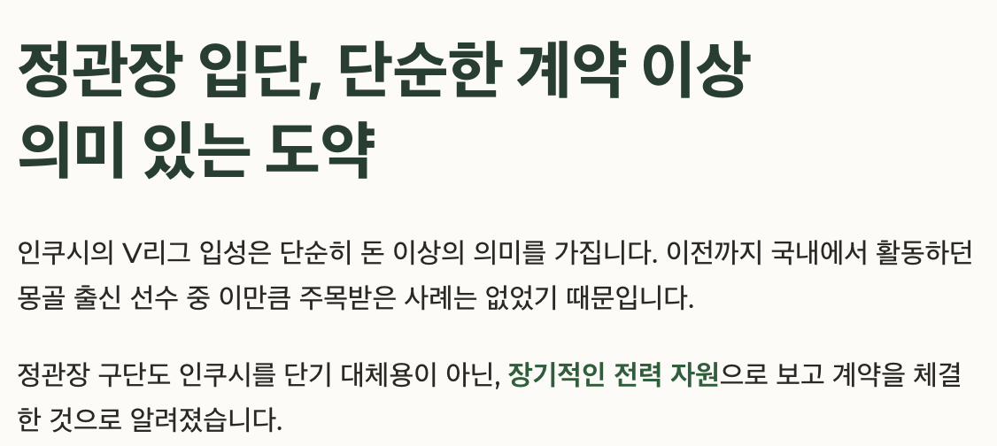 몽골 출신 배구 유망주 인쿠시가 드디어 V리그 무대에 입성했습니다. 김연경 감독의 지휘 아래 방송 프로그램 ‘신인감독 김연경’을 통해 알려진 인쿠시는 정관장 레드스파크스의 아시아쿼터로 깜짝 영입되며 많은 팬들의 주목을 받고 있는데요. 특히 많은 분들이 궁금해하는 부분은 바로 인쿠시의 프로 데뷔 연봉입니다. 오늘은 인쿠시의 정관장 입단 과정부터 연봉, 향후 귀화 가능성까지 상세히 알아보겠습니다.