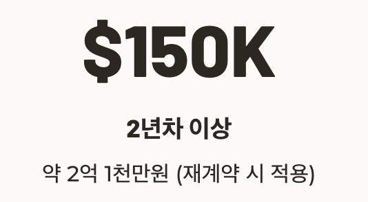 | 2년차 이상 | 15만 달러 (약 2억 1천만원) | 재계약 시 적용 |