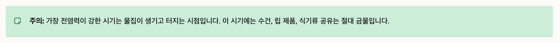 | 전구 증상 | 항바이러스 연고 즉시 사용 | 손으로 만지지 않기 |