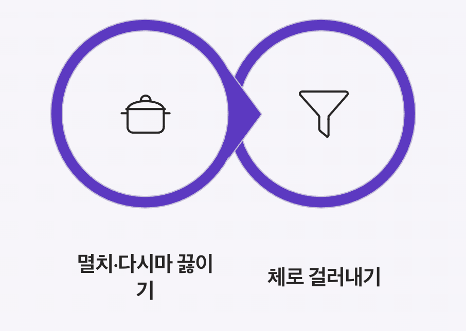 잔치국수 맛의 핵심은 바로 시원하고 깊은 멸치 육수입니다.