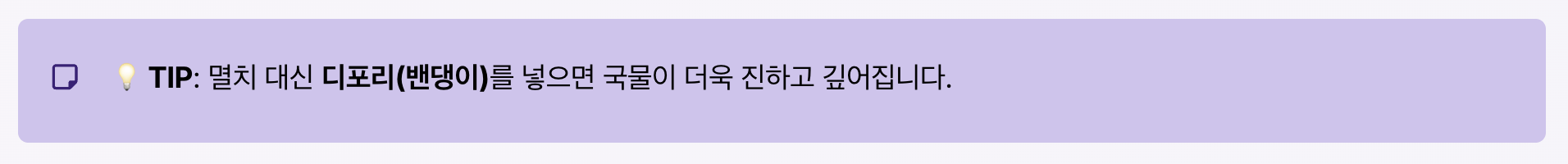 멸치 대신 디포리(밴댕이)를 넣으면 국물이 더욱 진하고 깊어집니다.
