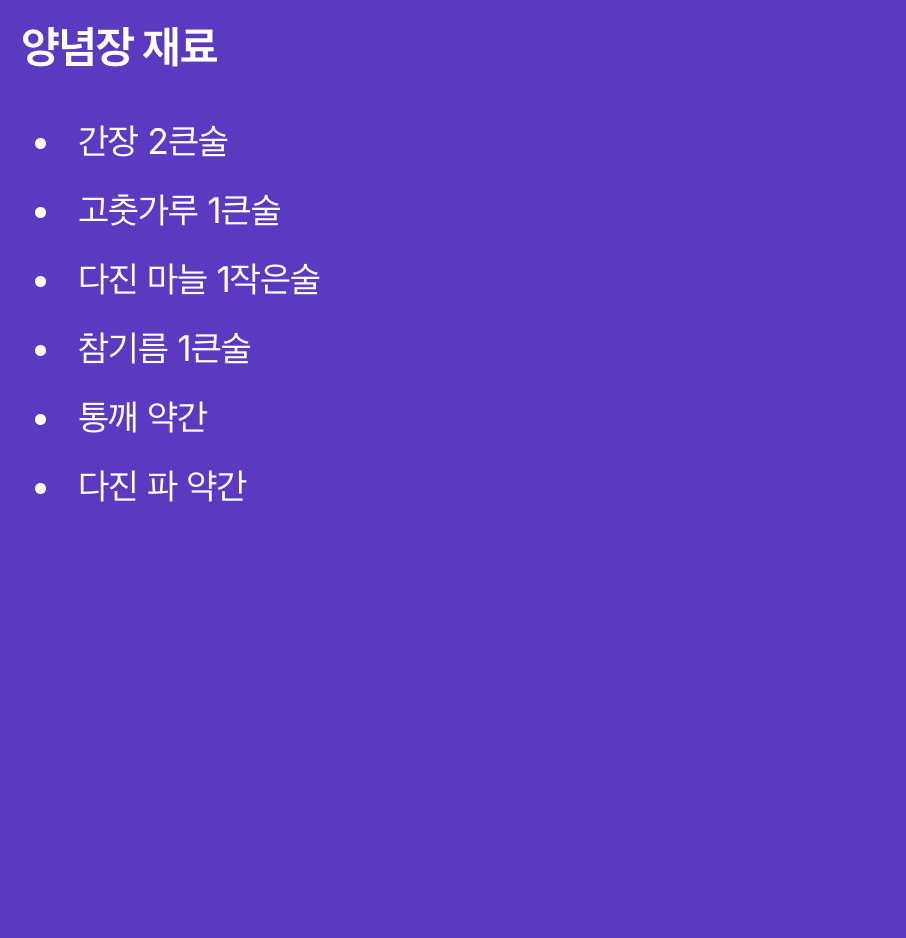 모든 재료를 섞어주면 고소하고 감칠맛 나는 양념장이 완성됩니다.