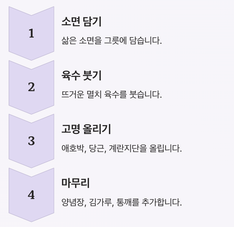 1️⃣ 끓는 물에 소면 넣기