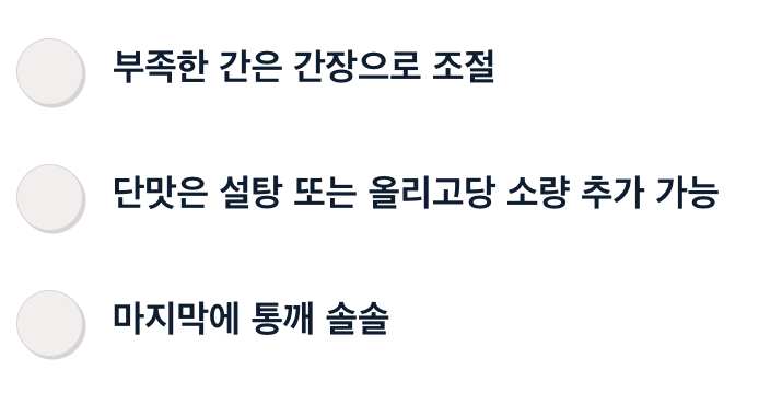 - 단맛은 설탕 또는 올리고당 소량 추가 가능