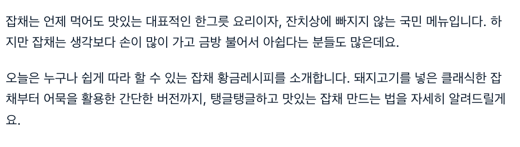 잡채는 언제 먹어도 맛있는 대표적인 한그릇 요리이자, 잔치상에 빠지지 않는 국민 메뉴입니다. 하지만 잡채는 생각보다 손이 많이 가고 금방 불어서 아쉽다는 분들도 많은데요. 오늘은 누구나 쉽게 따라 할 수 있는 잡채 황금레시피를 소개합니다. 돼지고기를 넣은 클래식한 잡채부터 어묵을 활용한 간단한 버전까지, 탱글탱글하고 맛있는 잡채 만드는 법을 자세히 알려드릴게요.