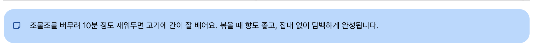 | 설탕 | 1.5큰술 (단맛 조절 가능) |