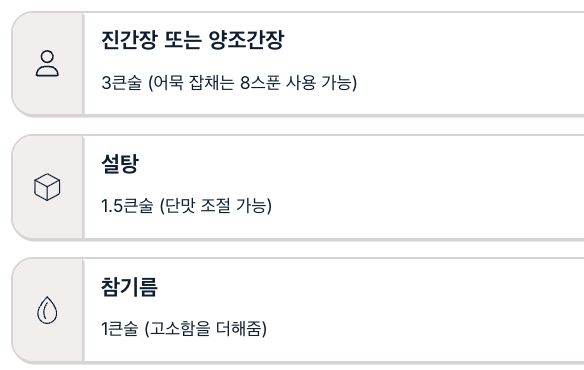 | 진간장 또는 양조간장 | 3큰술 (어묵 잡채는 8스푼 사용 가능) |
