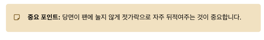 이때 당면이 팬에 눌지 않게 젓가락으로 자주 뒤적여주는 것이 중요합니다.