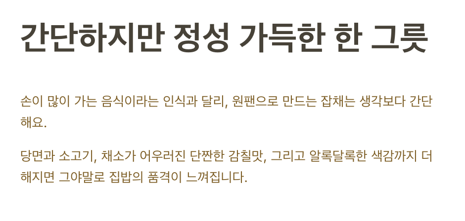 당면과 소고기, 채소가 어우러진 단짠 한 감칠맛, 그리고 알록달록한 색감까지 더해지면 그야말로 집밥의 품격이 느껴집니다.