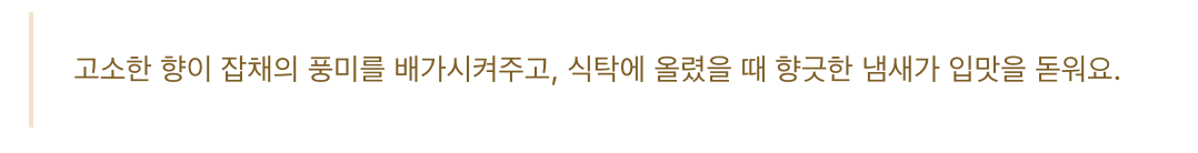 고소한 향이 잡채의 풍미를 배가시켜 주고, 식탁에 올렸을 때 향긋한 냄새가 입맛을 돋워요.