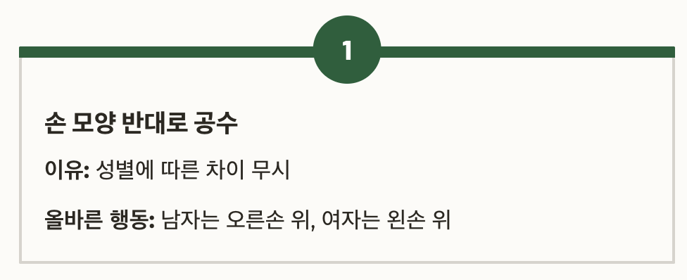 공수(拱手): 손을 포개어 가슴 앞에 두는 자세로, 절의 기본 준비 자세입니다.