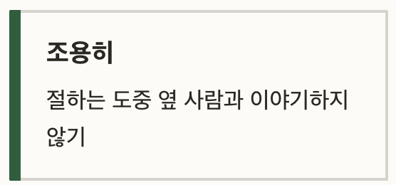절하는 동안엔 휴대폰도 무음 모드로 두고, 조용한 분위기를 흐리지 않도록 주의해야 해요.