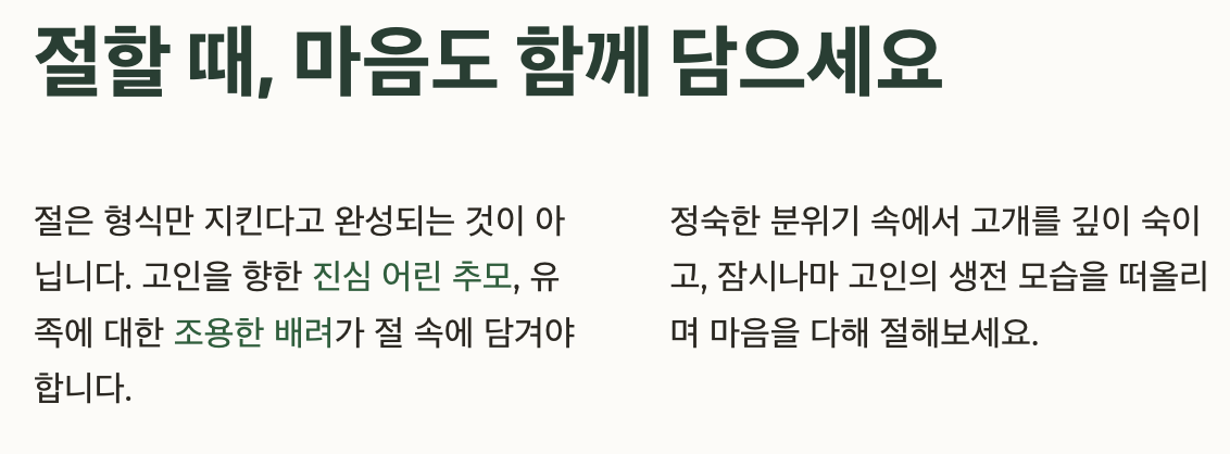 절은 형식만 지킨다고 완성되는 것이 아닙니다. 고인을 향한 진심 어린 추모, 유족에 대한 조용한 배려가 절 속에 담겨야 합니다.