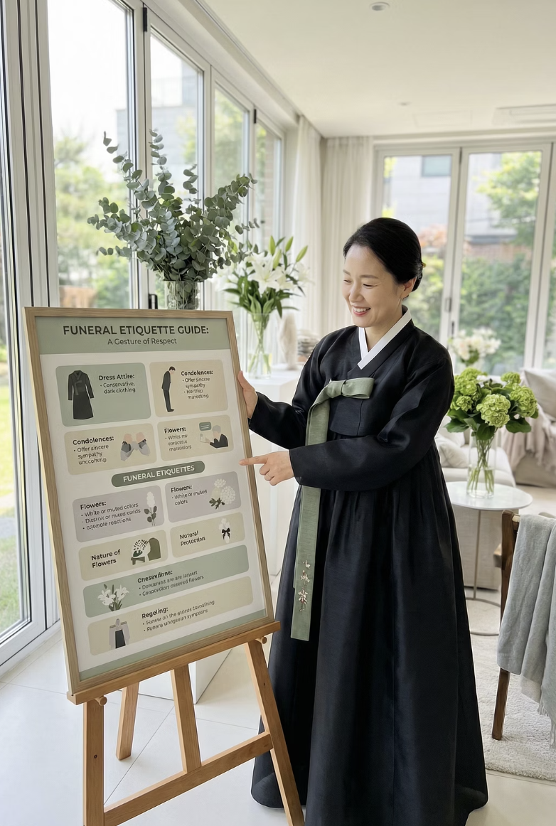 조문 순서 중 ‘분향 또는 헌화’ 이후 절을 하게 되며, 절하는 모습 자체가 유족에게는 큰 위로로 전해지기에 더욱 정중하게 임해야 합니다.