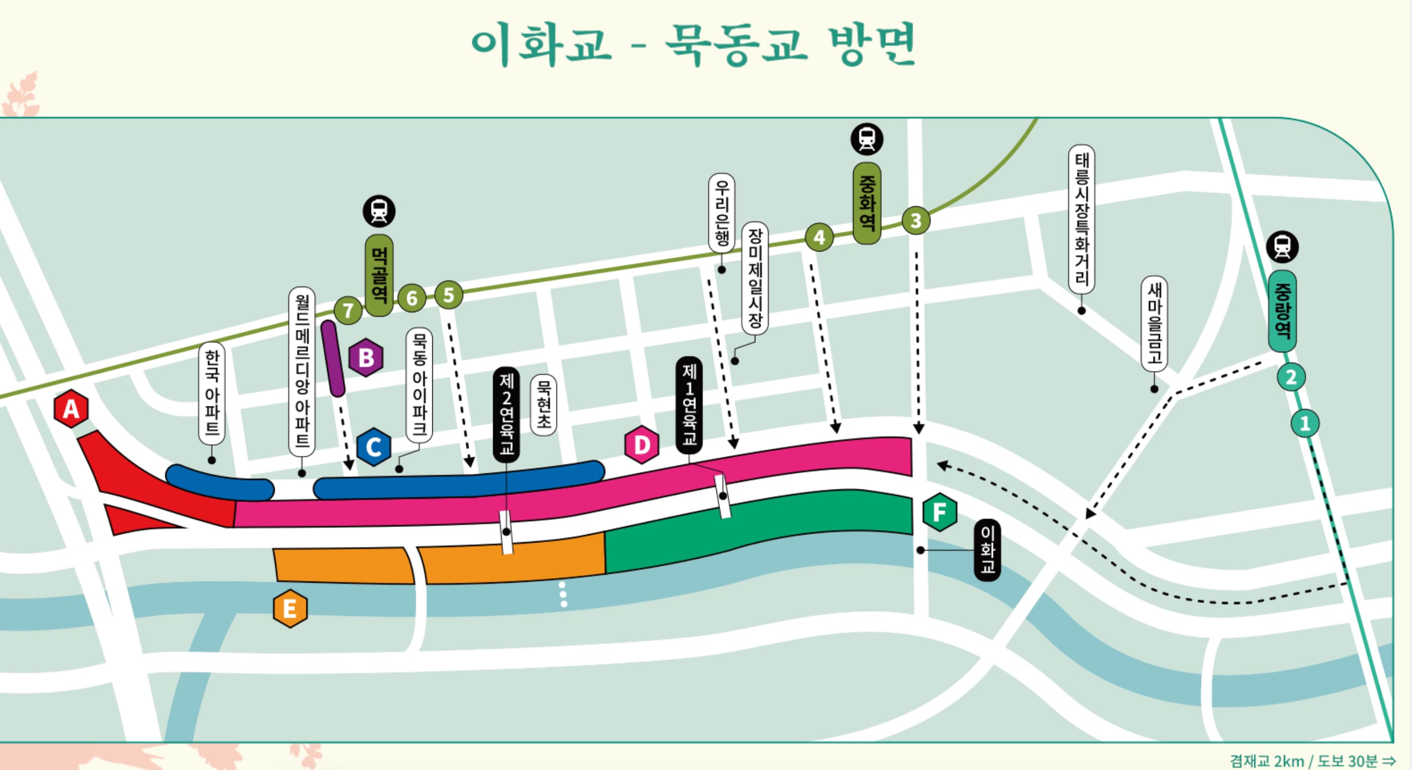 전체 구간 안내: 이화교부터 묵동교까지 6개 테마존