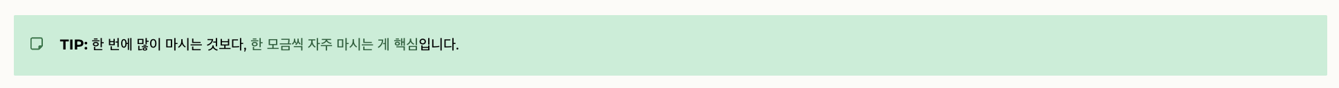 한 번에 많이 마시는 것보다, 한 모금씩 자주 마시는 게 핵심입니다.