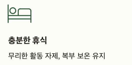 | 사우나, 뜨거운 목욕 | 복부 보온, 실내 안정 유지 |