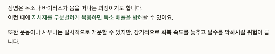 지사제, 운동? 오히려 회복 방해 요소일 수 있어요