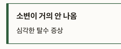 | 소변이 거의 안 나옴 | 심각한 탈수 증상 |