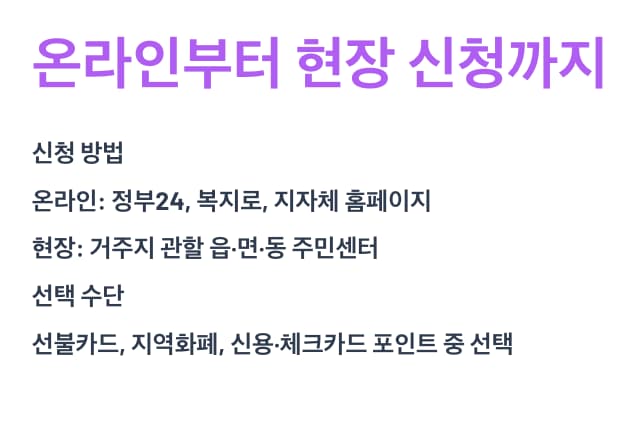 - 현장 신청: 거주지 관할 읍·면·동 주민센터