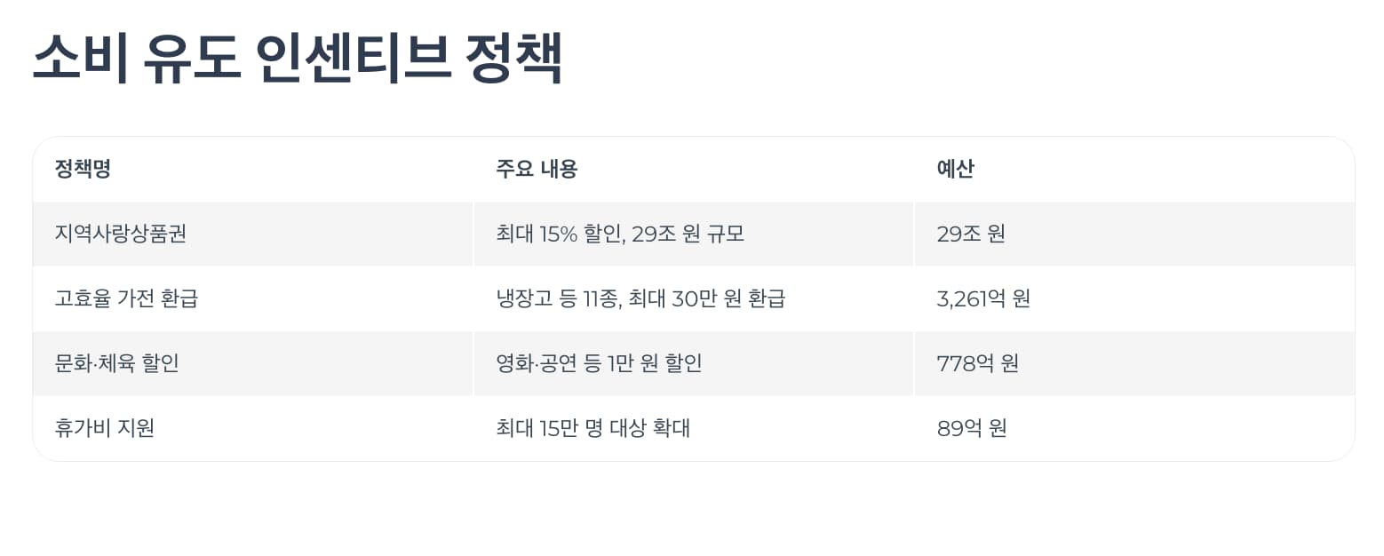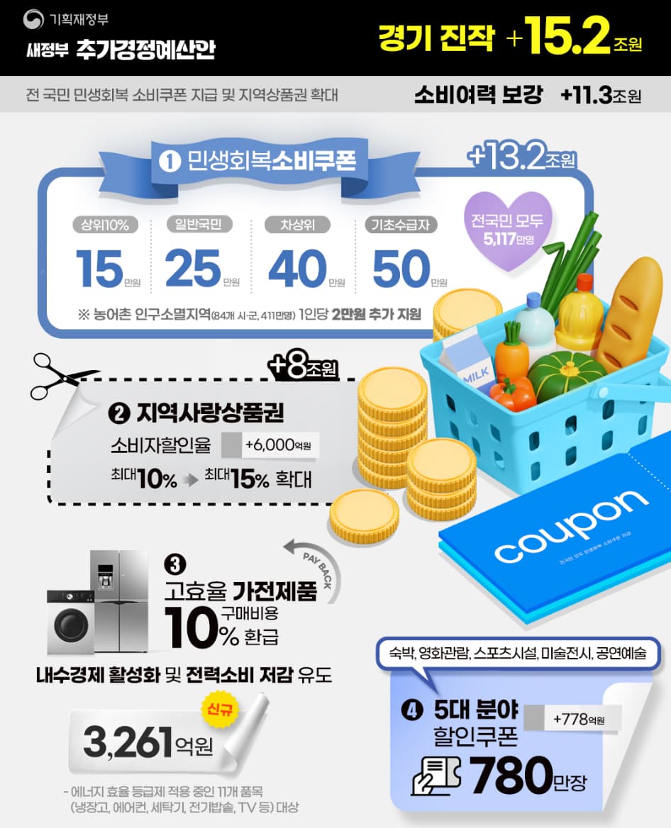 소비쿠폰 외에도 지역사랑상품권 할인, 가전환급, 문화비 지원 등