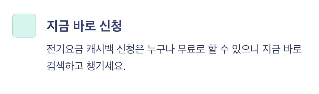 포털에서 '전기요금 캐시백 신청'을 검색하세요.