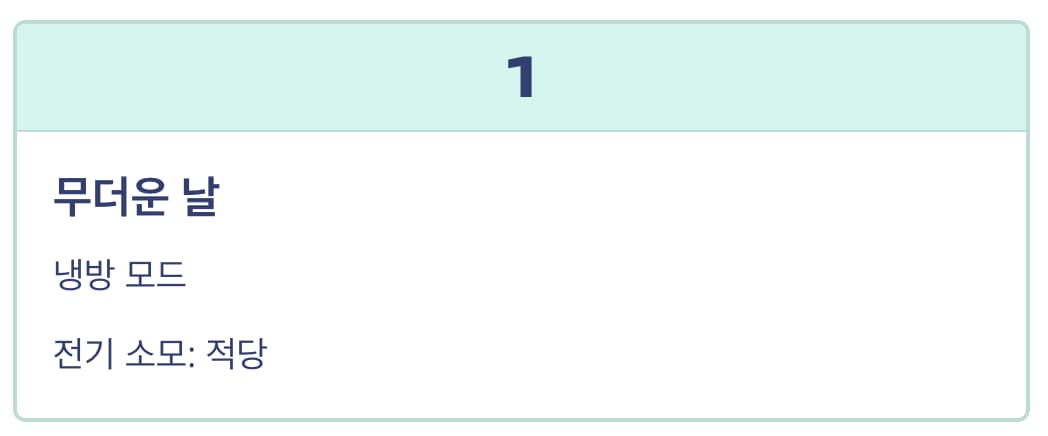 | 무더운 날 | 냉방 모드 | 적당 |