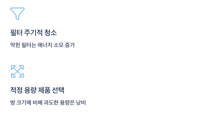 • 필터 주기적 청소: 막힌 필터는 에너지 소모 증가