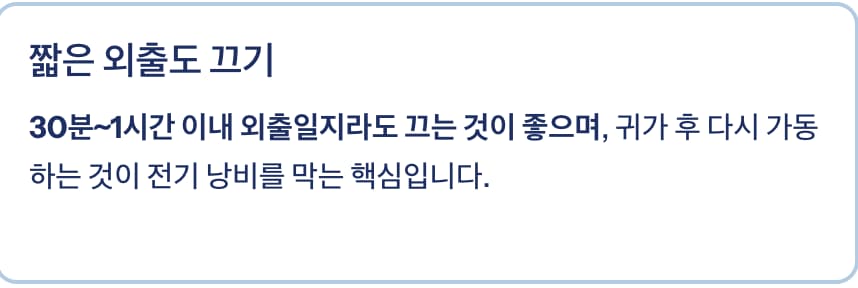 귀가 후 다시 가동하는 것이 전기 낭비를 막는 핵심입니다.