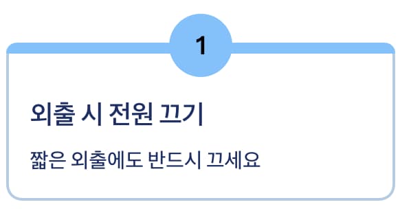 특히 30분~1시간 이내 외출일지라도 끄는 것이 좋으며,