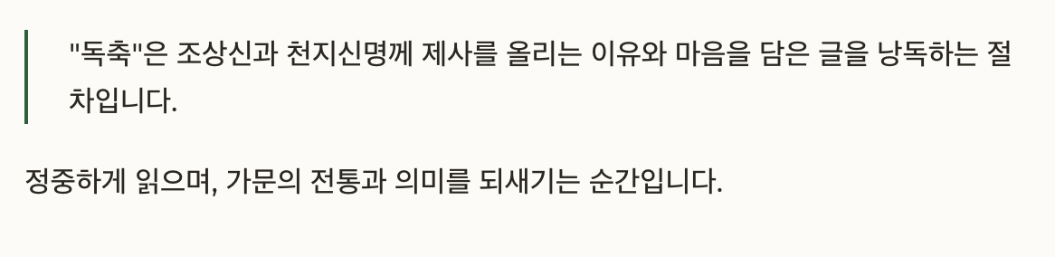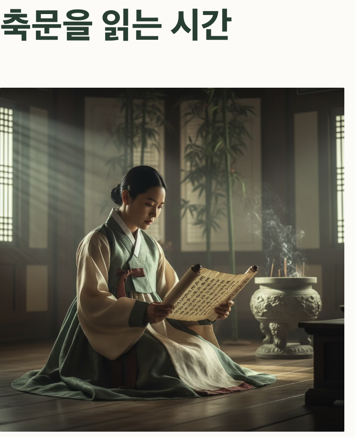 정중하게 읽으며, 가문의 전통과 의미를 되새기는 순간이죠.