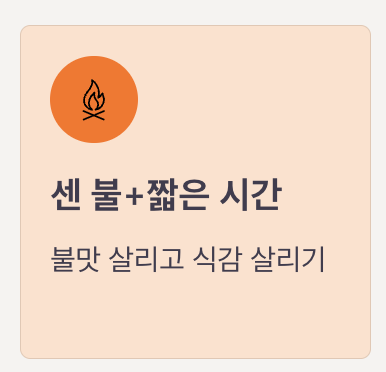 - 센 불+짧은 시간 → 불맛 살리고 식감 살리기