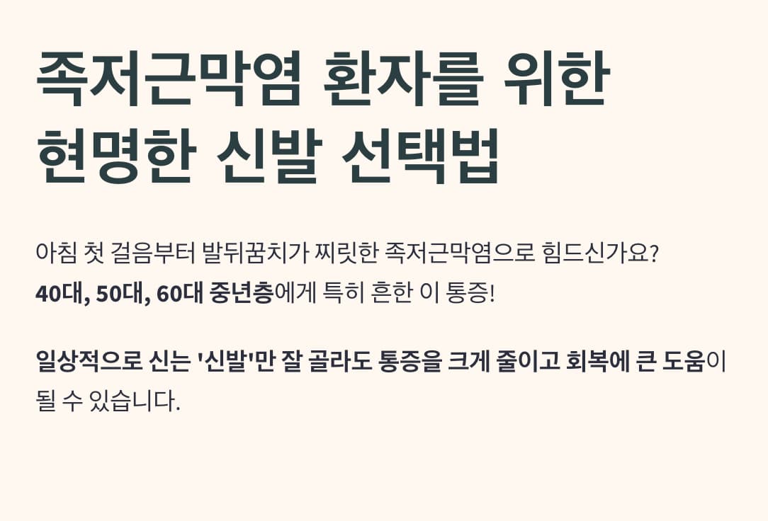 아침 첫걸음부터 발뒤꿈치가 찌릿한 족저근막염으로 힘드신가요? 40대, 50대, 60대 중년층에게 특히 흔한 이 통증!