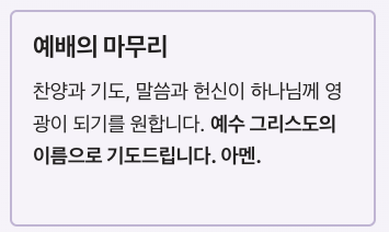 | 예배 | 예배가 하나님께 영광되도록 기도 |