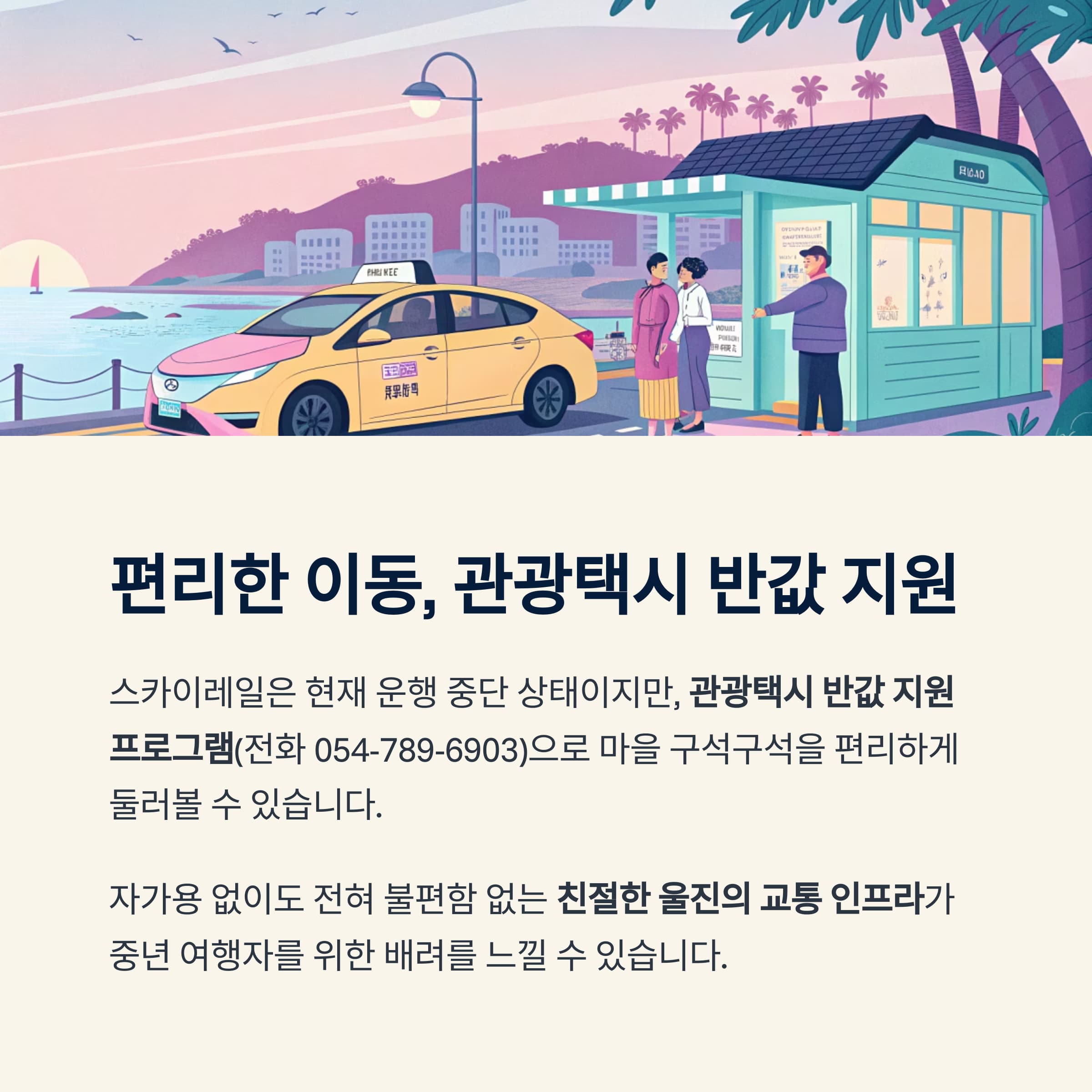자가용 없이도 전혀 불편함 없는 친절한 울진의 교통 인프라가 돋보입니다.