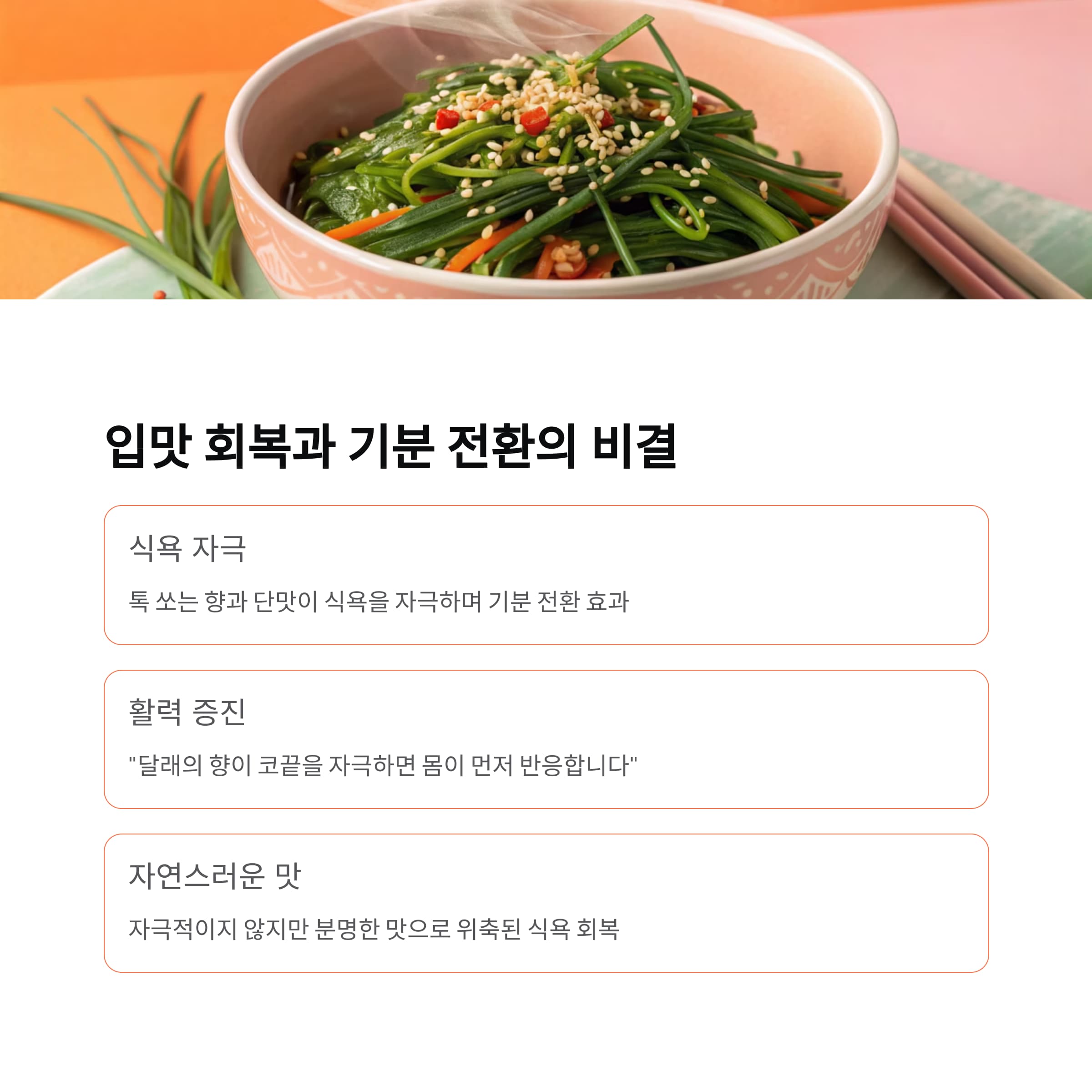 달래무침은 그 과정에서 가장 손쉽고, 지속 가능하며, 맛까지 있는 해결책입니다.