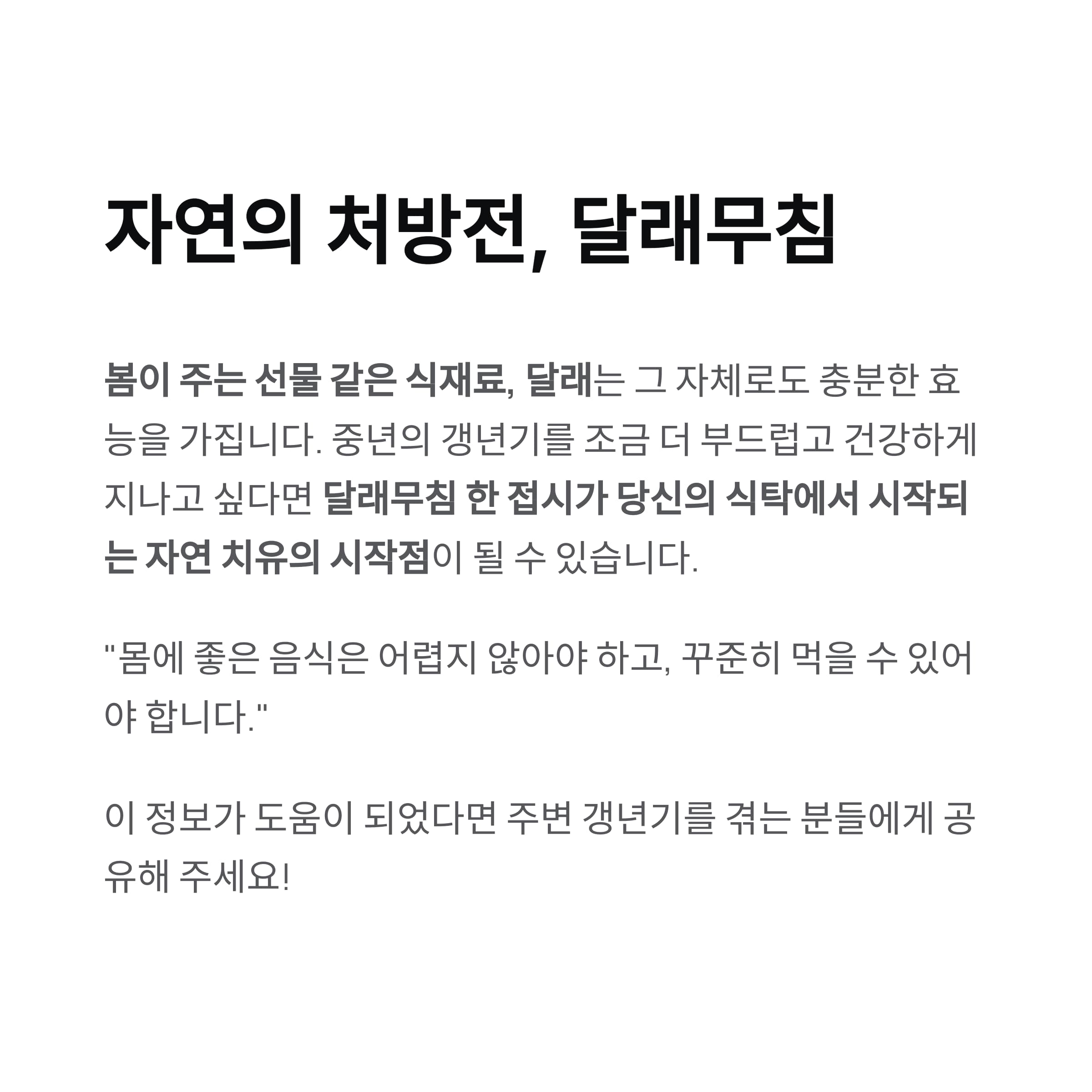 정리하며: 달래무침은 갱년기를 지나가는 자연의 처방전