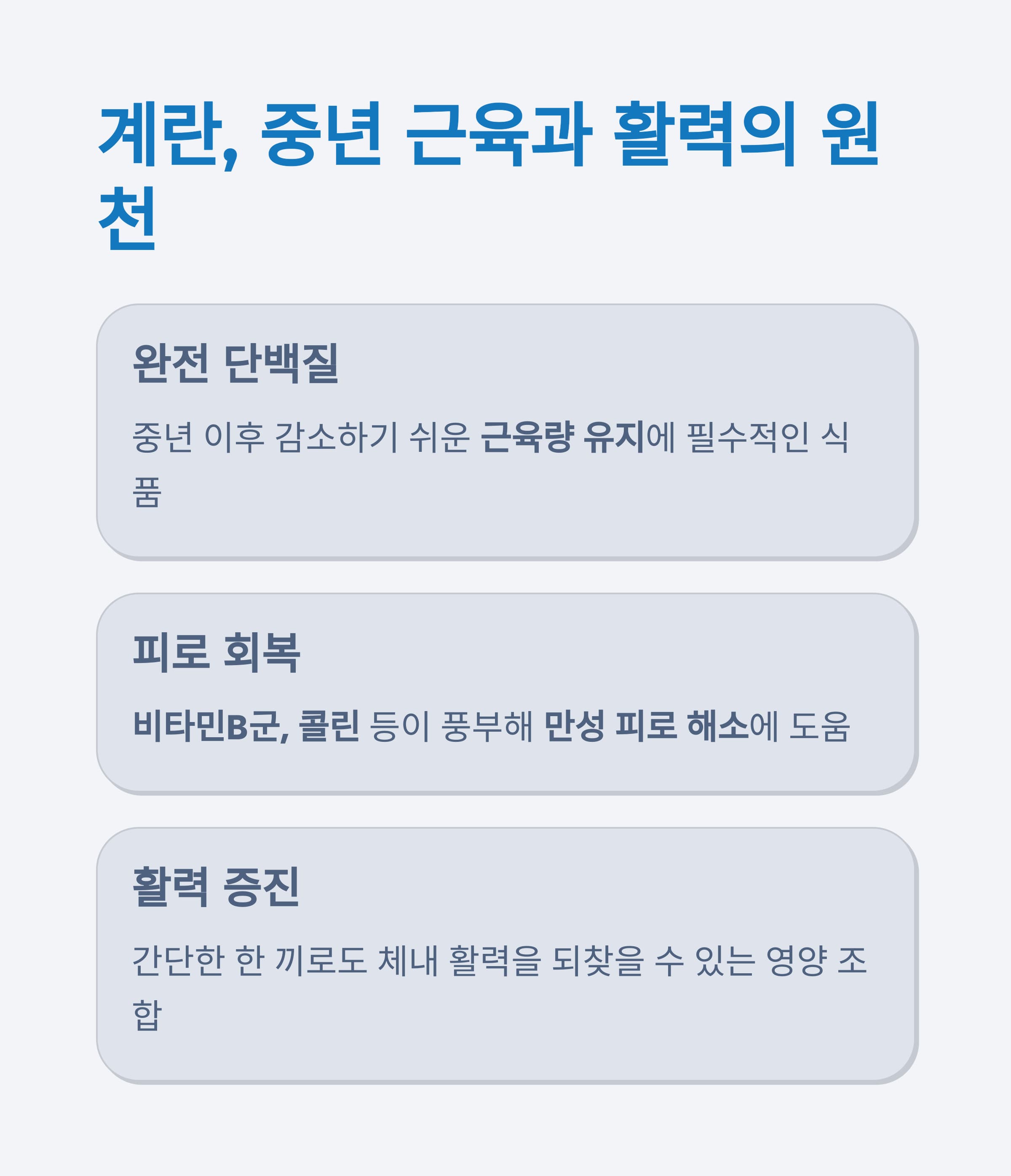 계란은 단백질과 비타민이 풍부해 체력 유지와 근육 보존에 중요한 재료죠.