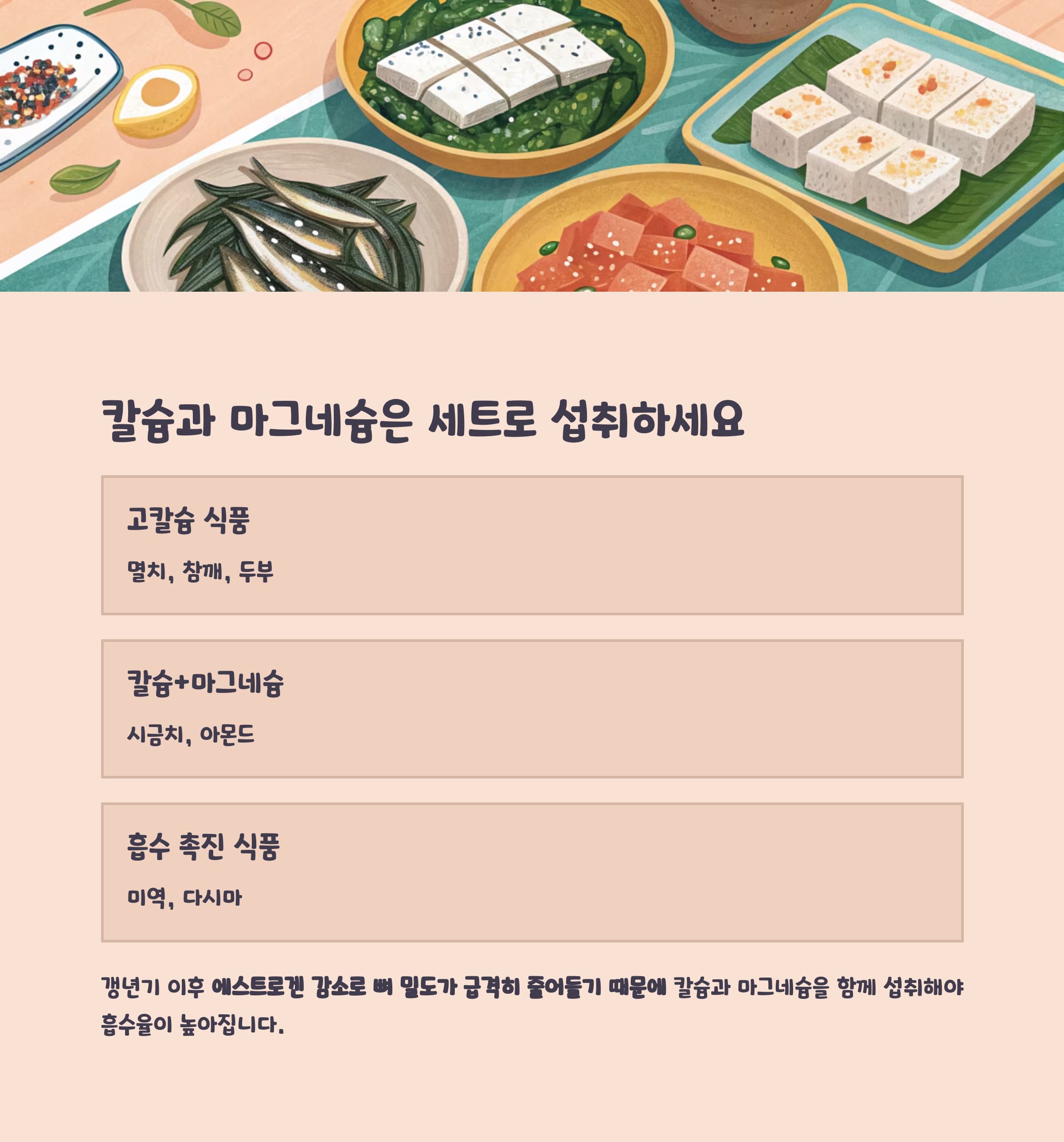 | 멸치, 참깨, 두부 | 고함량 칼슘 |