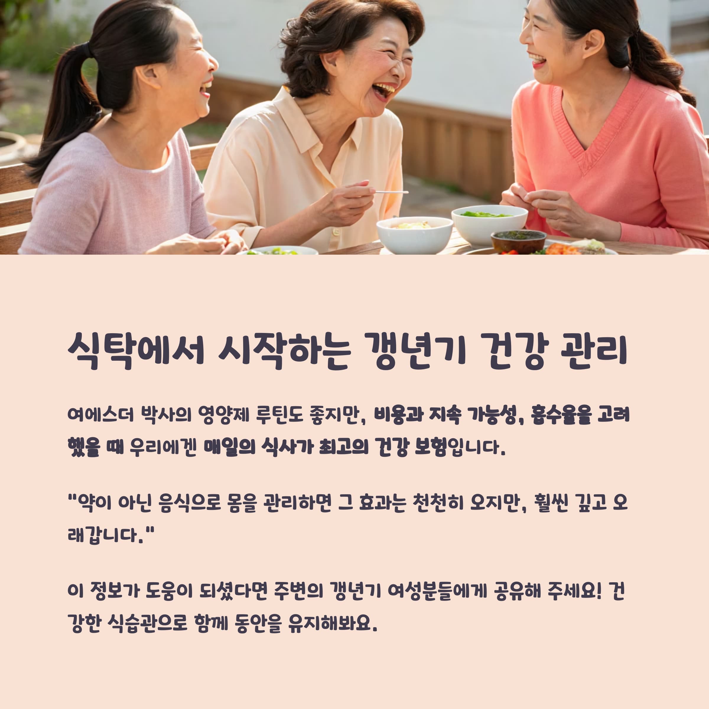 갱년기 중년 여성의 건강, 식탁에서 시작해 보세요.